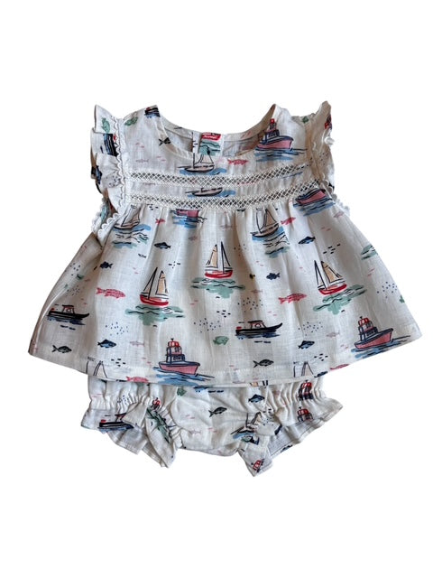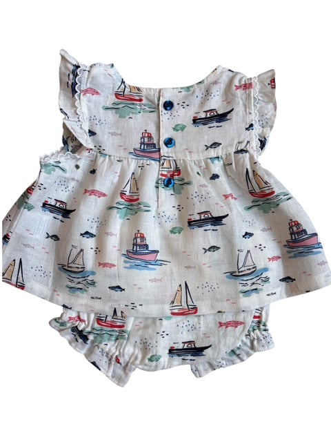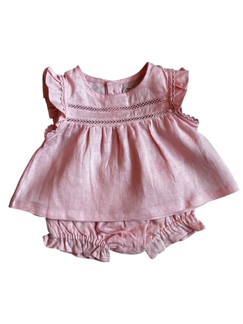 Breezy, beautiful, and made for play, this linen set pairs a fluttery ruffle cap-sleeve top with easygoing shorts for a look that’s both timeless and fun. Delicate lace trim adds a touch of vintage sweetness, while the lightweight linen keeps things cool and comfortable. Available in three signature styles—our coastal-inspired Cape print, soft Pink Blossom, and classic English Garden—each set brings its own story to sunny days and carefree adventures.