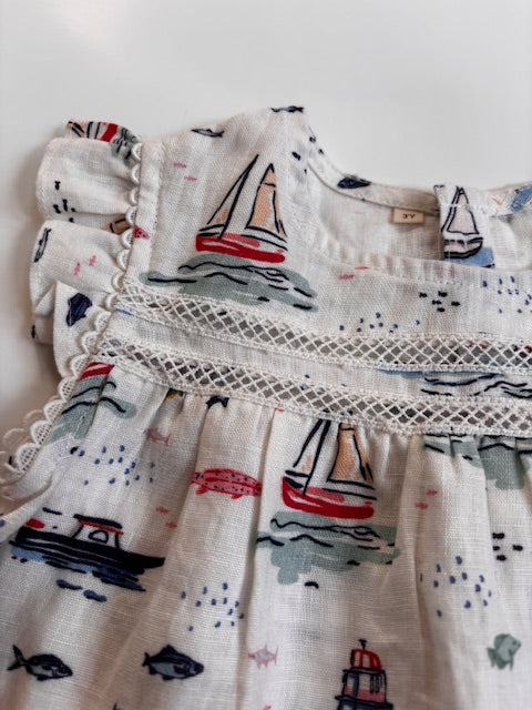 Breezy, beautiful, and made for play, this linen set pairs a fluttery ruffle cap-sleeve top with easygoing shorts for a look that’s both timeless and fun. Delicate lace trim adds a touch of vintage sweetness, while the lightweight linen keeps things cool and comfortable. Available in three signature styles—our coastal-inspired Cape print, soft Pink Blossom, and classic English Garden—each set brings its own story to sunny days and carefree adventures.