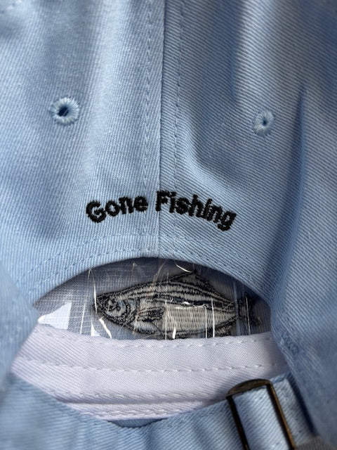 Reel in some serious style with our Adult's Embroidered Fish Hat, the ultimate catch for grown-ups who don’t take life too seriously! Available in crisp white or chill blue, this hat sports a snazzy embroidered fish on the front, crafted from our custom fabric that’s so fly, it’ll have everyone hooked. And the “Gone Fishing” stitched on the back? It’s your cheeky excuse for dodging adult responsibilities with a wink and a grin.